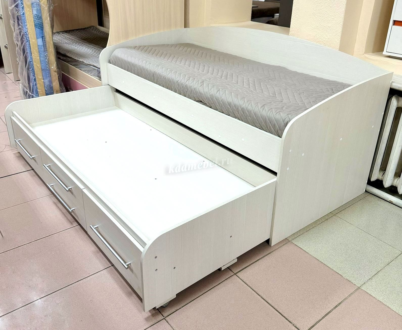 Ответ : Здравствуйте. Данная кровать идет в контейнере. Срок ожидания 1 - 1,5 месяца.