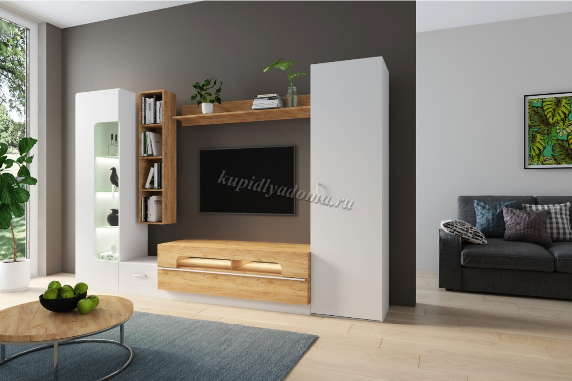 Гостиная Лофт-20 (Белая Аляска/Дуб Вотан)