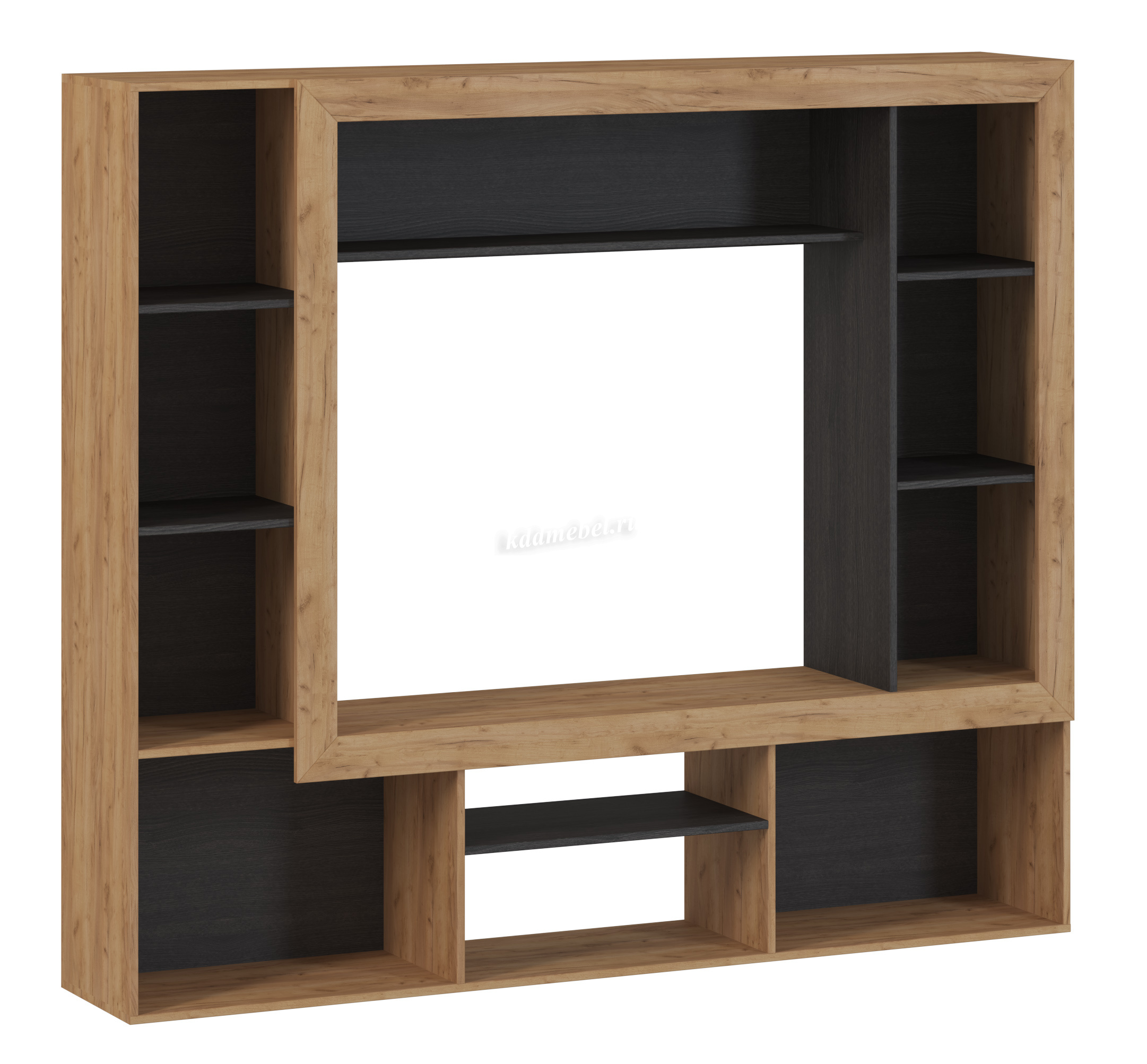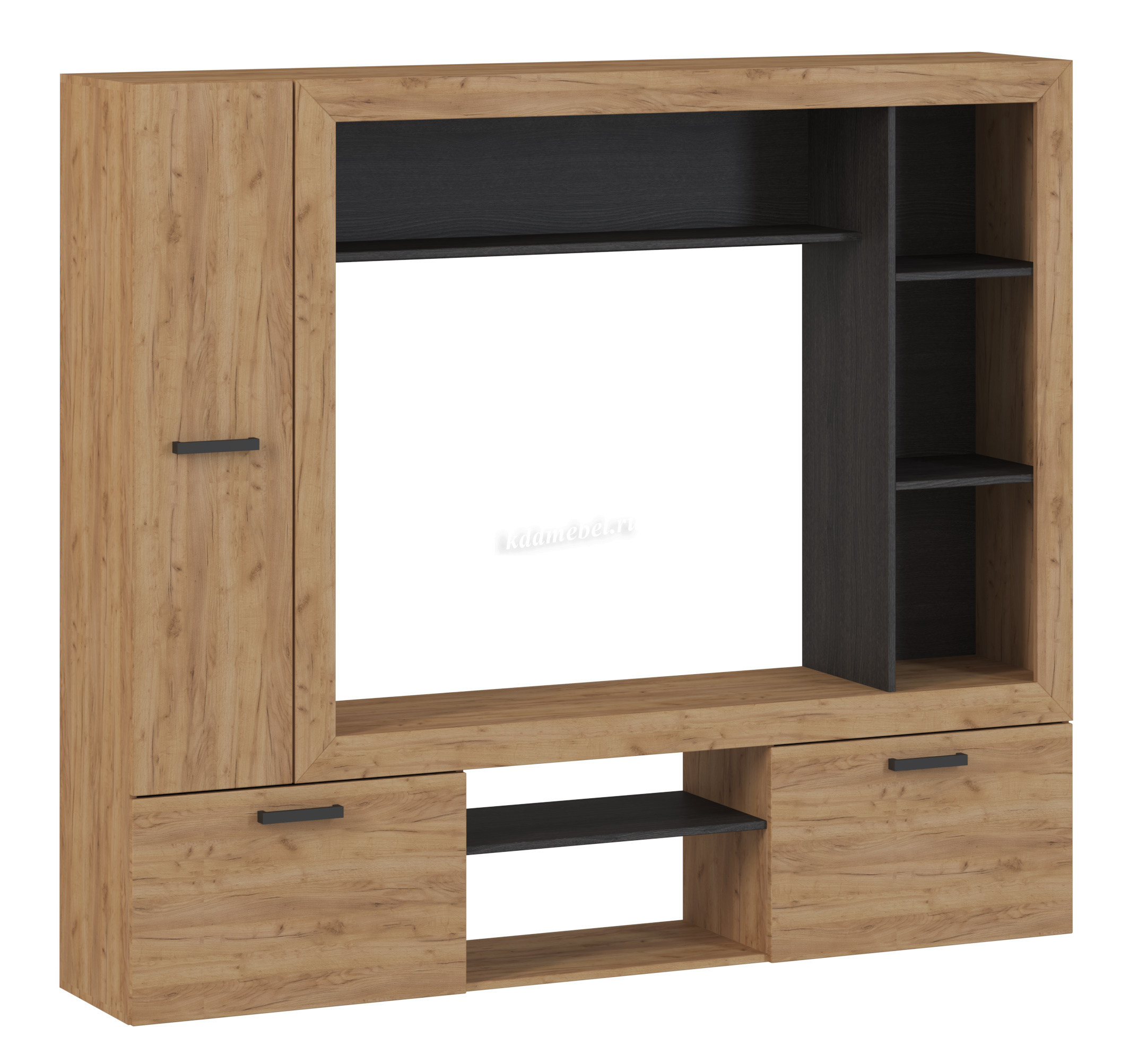 Компактная гостиная для небольших помещений или для тех, кто не хочет заставлять комнату большими конструкциями. В Гостиной «Oskar-3» предусмотрены открытые и закрытые полки для хранения мелочей, бумаг, книг. Место для телевизора и аппаратуры. Закрытые отделения для хранения белья, а так же полка для сувениров и фотографий. Отличительной особенностью гостиной является багетная рамка, которая придает гостиной современный вид.