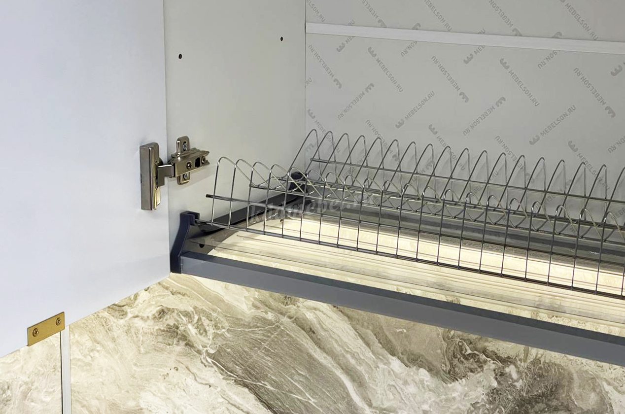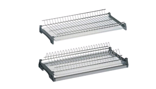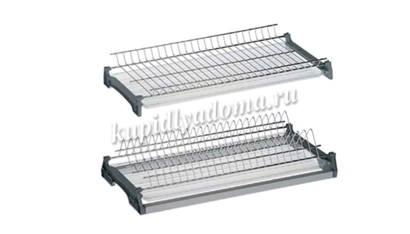 Отличная дополнительная опция для хранения посуды и сохранения корпуса кухни от влаги. Комплектуется двумя отдельными поддонами для верхнего и нижнего яруса. При установке евросушки нижняя полка шкафа убирается.