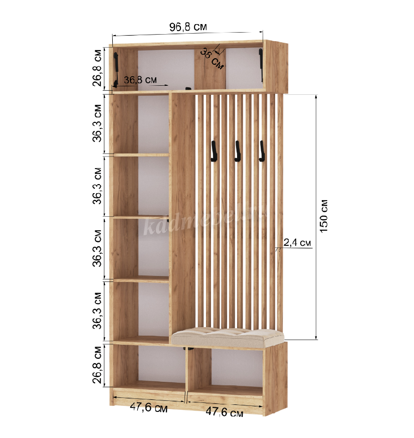 У меня длина стены 1800 см. Я хочу шкаф двухстворчатый (900 см) и вешалку. И вешалка не помещается.