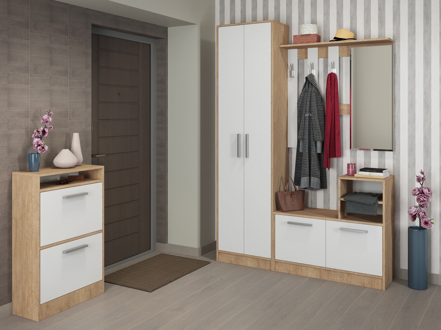 В дизайне современной коллекции мебели для прихожей "Энтер" используются лаконичные формы и древесные текстуры светлых и темных оттенков. Модульную прихожую "Энтер" вы можете приобрести как единым комплектом, так и отдельными модулями.