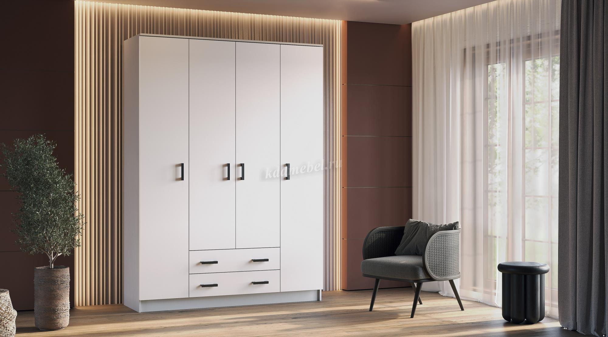 Помимо своей большой функциональности, четырехдверный шкаф Квадро без зеркал отлично впишется в любое помещение Вашей квартиры либо дома