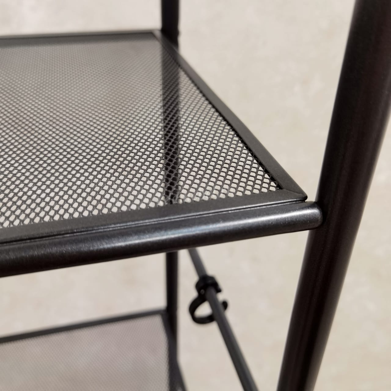 Система хранения имеет 3 металлических сетчатых полок, каждая из которых выдерживает нагрузку до 8 кг.
